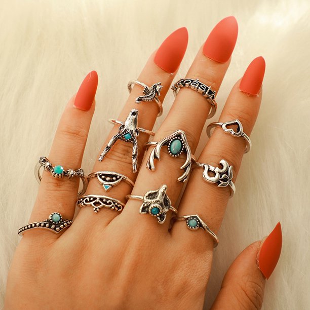 Rings For Women Girls 12 Pcs Set Stackable Knuckle Ring Boho Bohemian Vintage Gem Stone Jewel Deer Fox Forest Theme Finger Rings Teens Silver Walmart Com